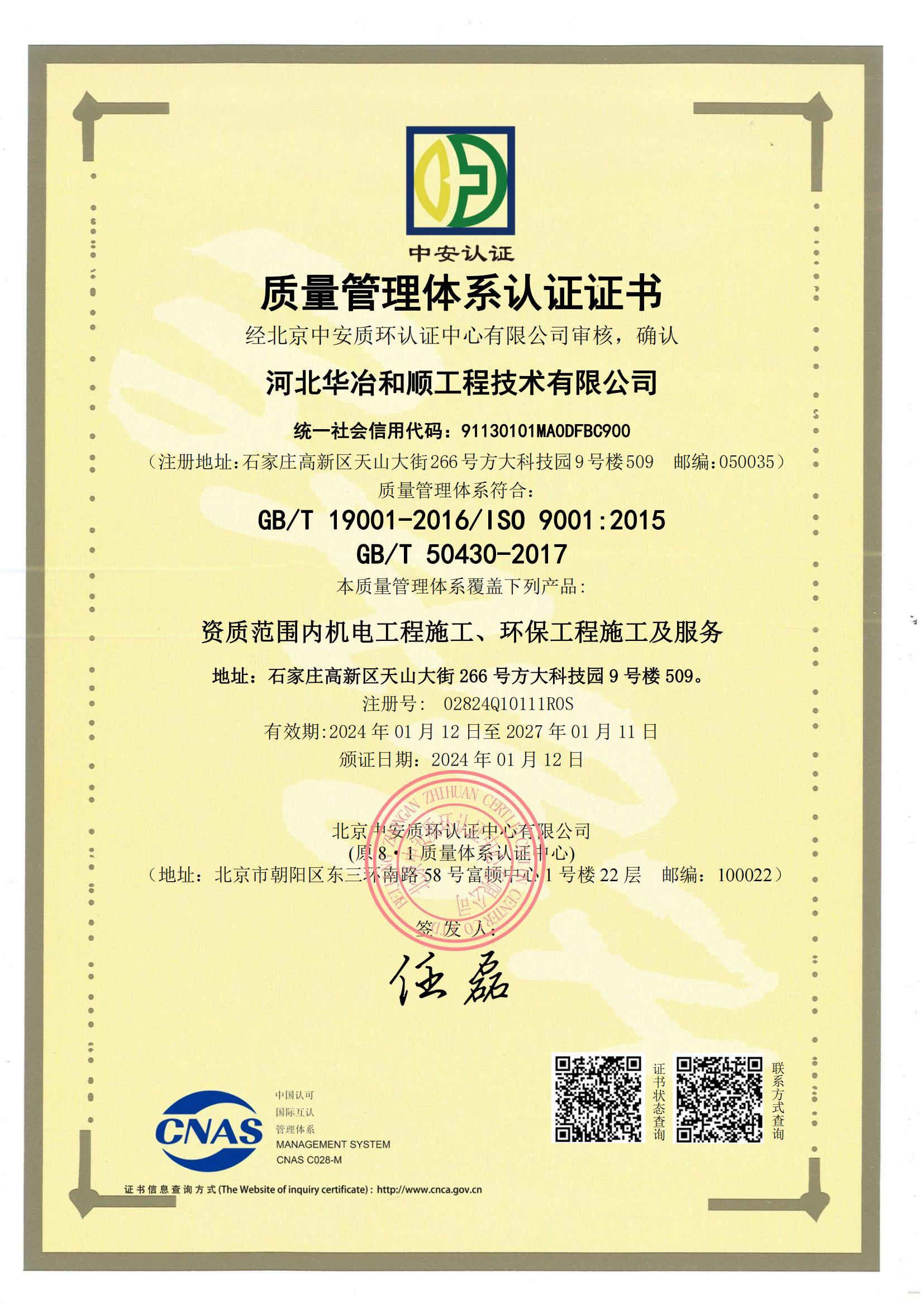 質(zhì)量管理體系認(rèn)證證書(shū)