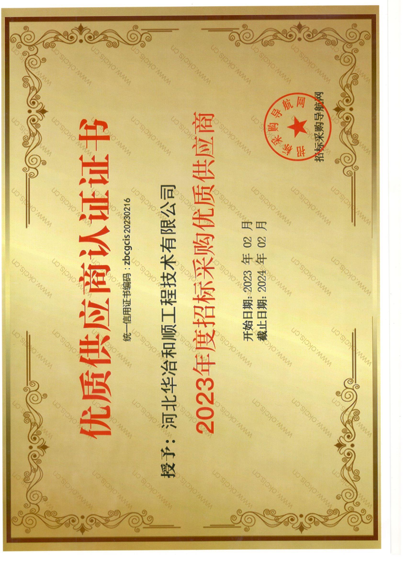優(yōu)質(zhì)供應(yīng)商認(rèn)證證書(shū)